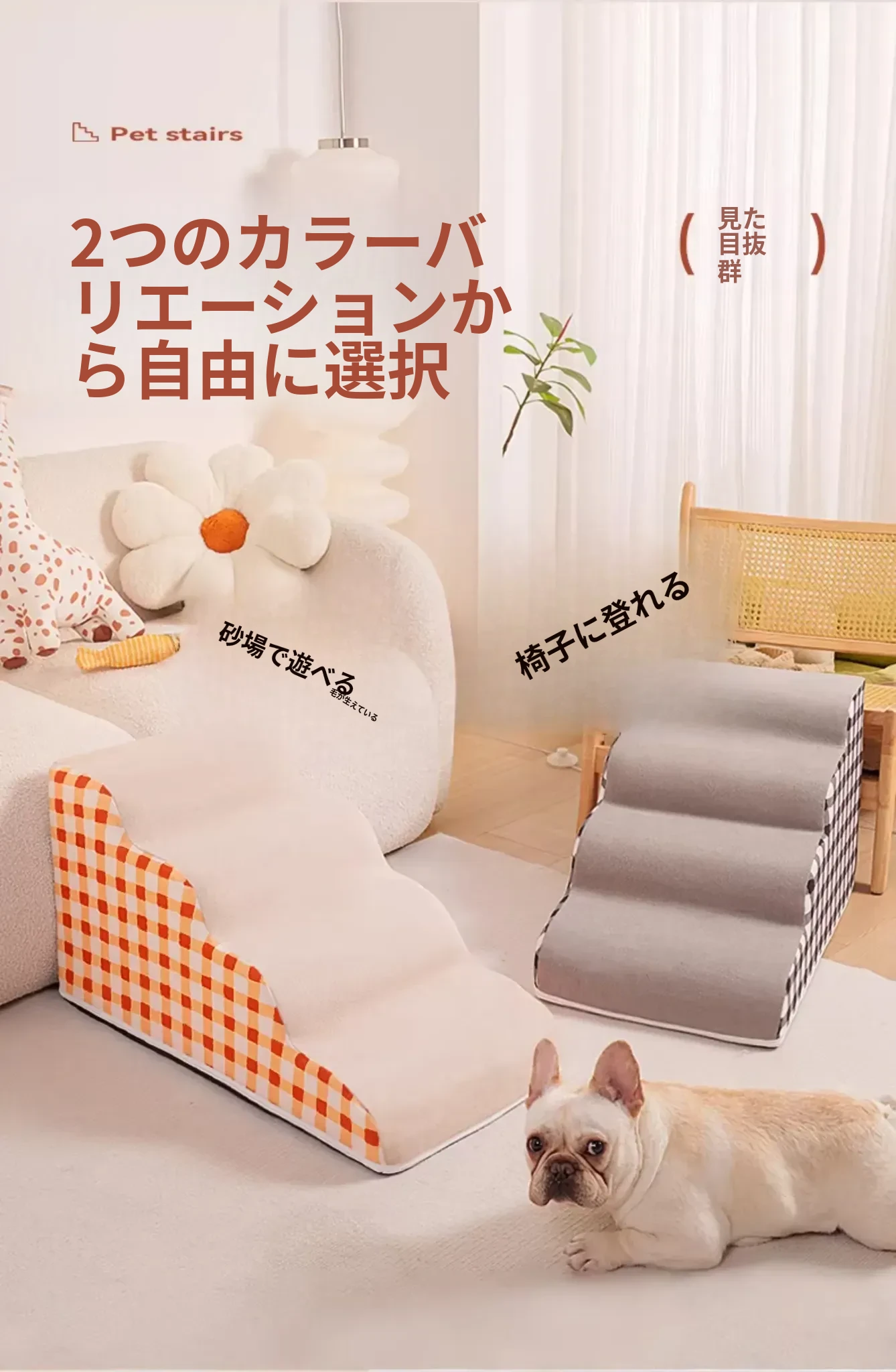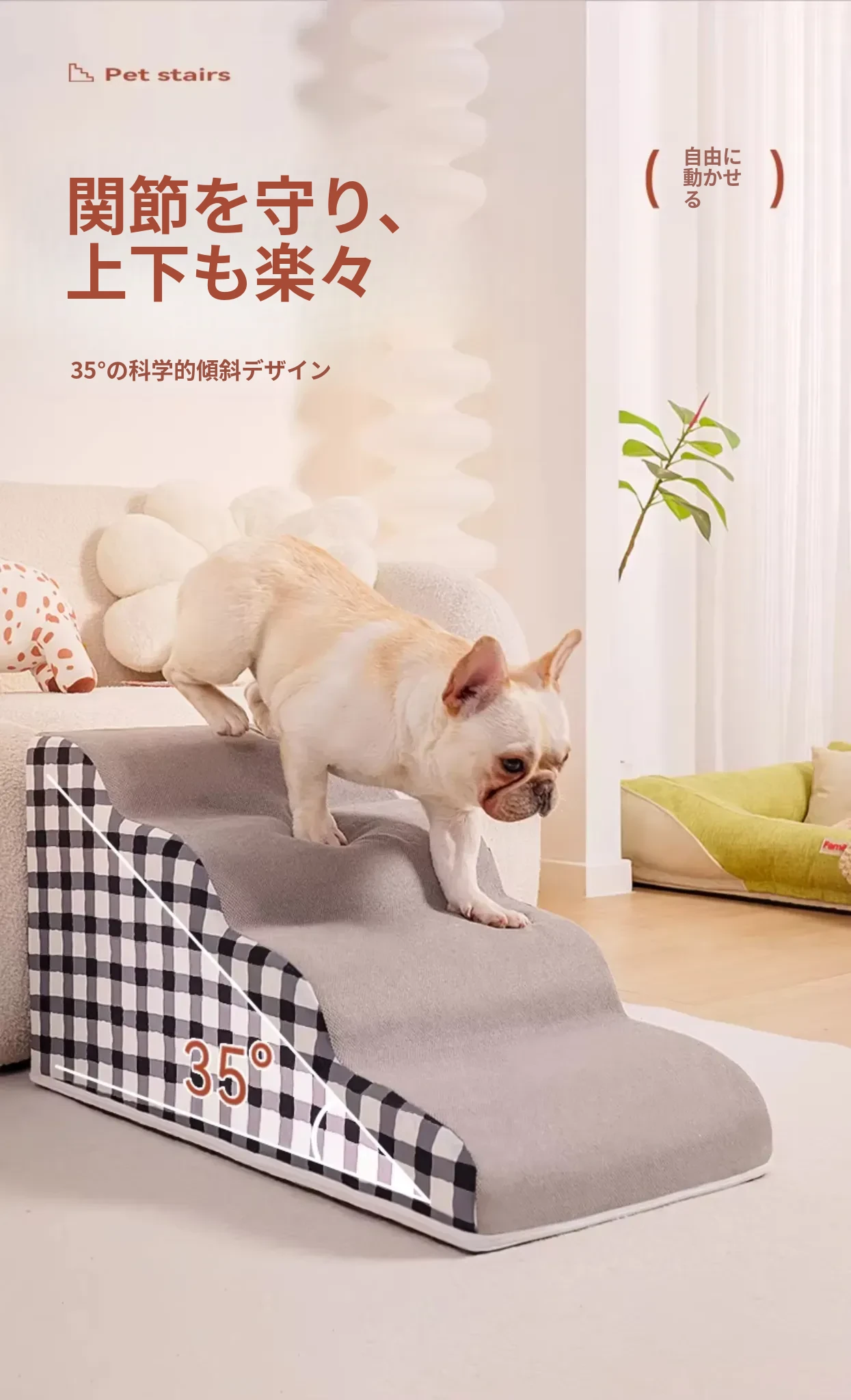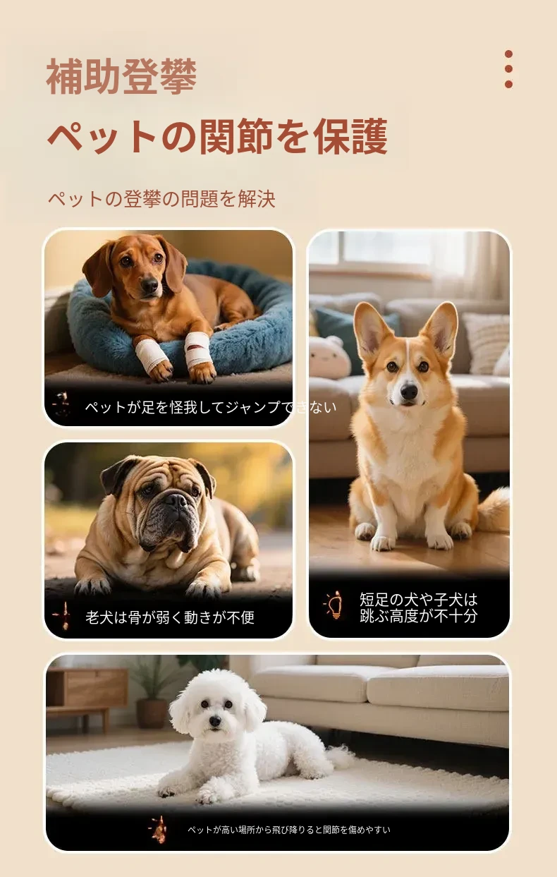 ペット用階段 小型犬専用ベッドサイドソファ斜面スロープ 簡単に分解・洗浄可能 老犬のための優しい階段で、愛犬の快適な生活をサポートします!