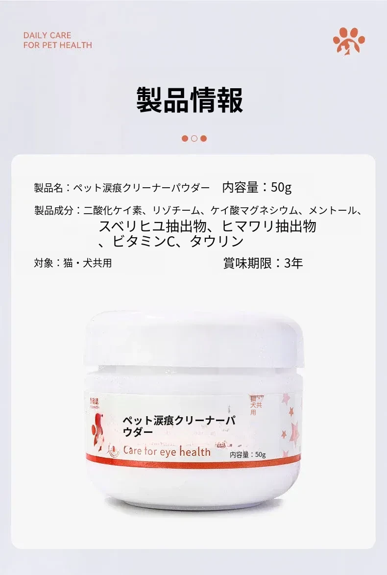 ペット専用涙やけ粉!ビション・テディ・ポメラニアン・ペルシャ猫にも最適な目元クリーンアイテム!涙腺の汚れをスッキリ除去して、愛犬・愛猫の美しい目元をサポートします!