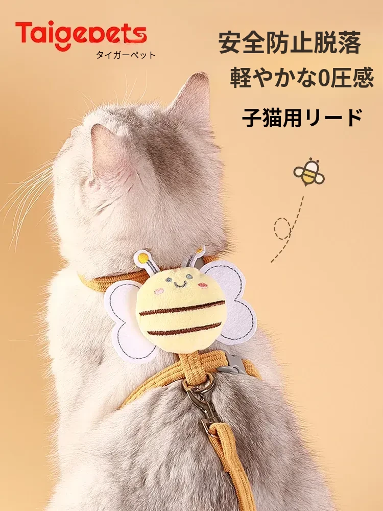 Taige子猫専用調整可能なキャットリード - 抜け出し防止、首を締めない胸部ハーネス付き!愛猫とのお散歩をもっと楽しく、安全に!